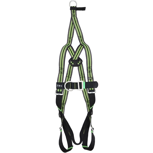 Body harness with 2 attachment points and 1 extension rescue strap Attachment elements - 1 sternal attachment D-Ring and a dorsal attachment D-Ring for fall arrest; Extension rescue strap with top D-Ring for rescue. Adapatbility - Adjustable shoulder and thigh-straps. Convenience - Shoulder and thigh-straps differentiated by a dual colour scheme. Ergonomics Ideally positioned sit-strap for extended comfort. Conforms to EN361:2002 and EN1497:1996