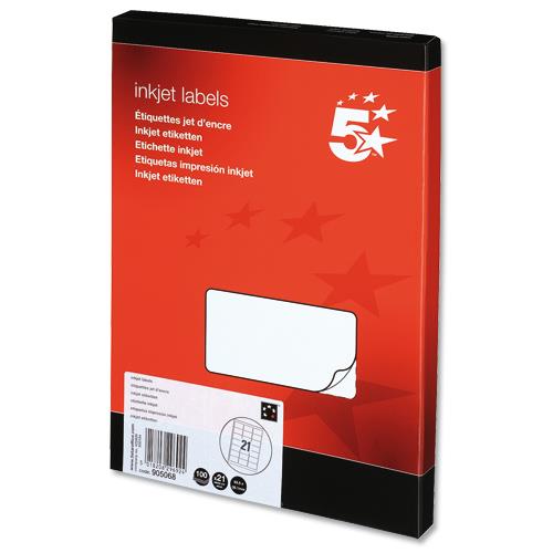 5 Star Office Addressing Labels Inkjet 21 per Sheet 63.5x38.1mm White [2100 Labels]