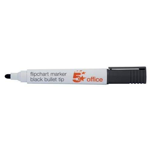 5 Star Office Flipchart Marker Bullet Tip Water-based 2mm Line Black [Pack 12]
