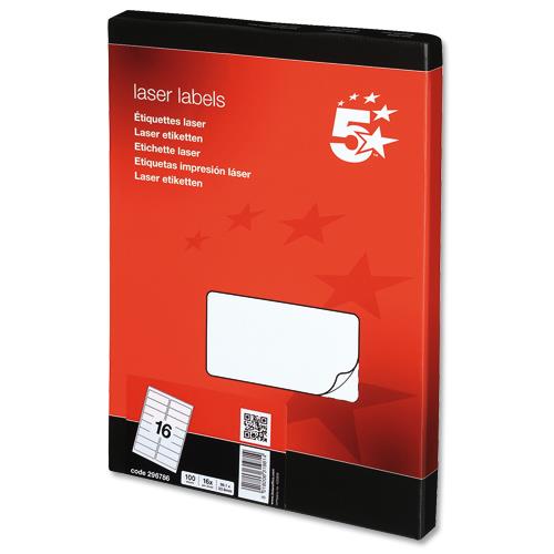 5 Star Office Multipurpose Labels Laser 16 per Sheet 99.1x34mm White [1600 Labels]