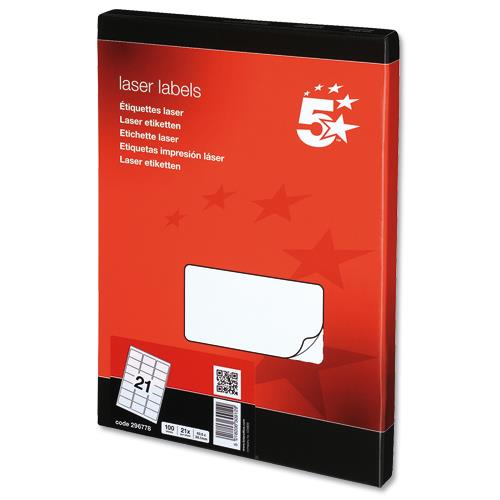 5 Star Office Multipurpose Labels Laser 21 per Sheet 63.5x38.1mm White [2100 Labels]