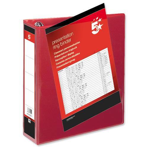 5 Star Office Presentation Ring Binder Polypropylene 4 D-Ring 65mm Size A4 Red [Pack 10]