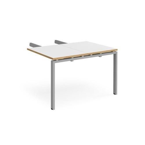Adapt add on unit double return desk 800mm x 1200mm - silver frame, white top with oak edge