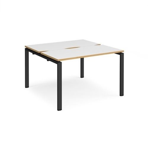 Adapt back to back desks 1200mm x 1200mm - black frame, white top with oak edging