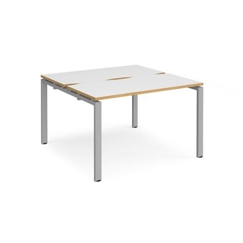 Adapt back to back desks 1200mm x 1200mm - silver frame, white top with oak edging