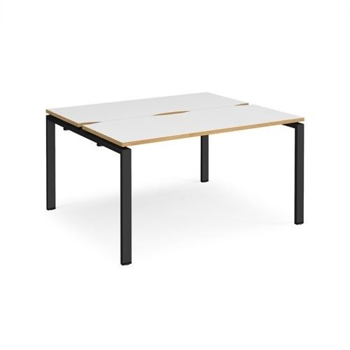 Adapt back to back desks 1400mm x 1200mm - black frame, white top with oak edging