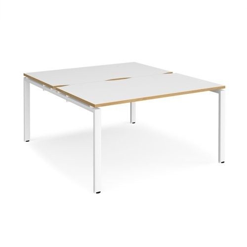 Adapt back to back desks 1400mm x 1600mm - white frame, white top with oak edging