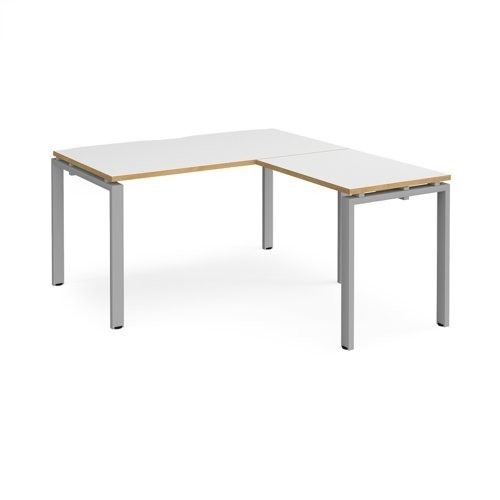 Adapt desk 1400mm x 800mm with 800mm return desk - silver frame, white top with oak edge
