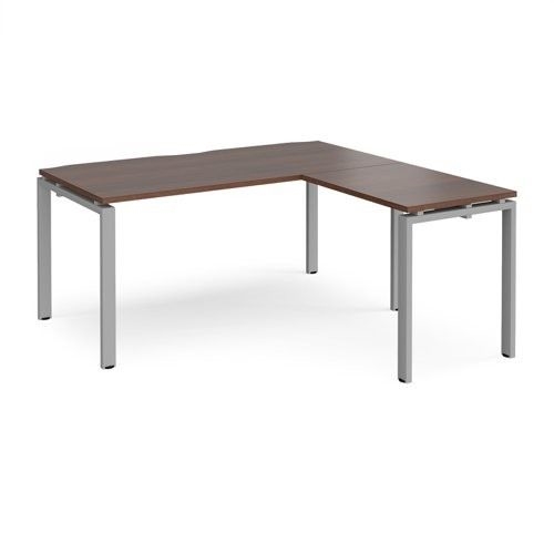 Adapt desk 1600mm x 800mm with 800mm return desk - silver frame, walnut top