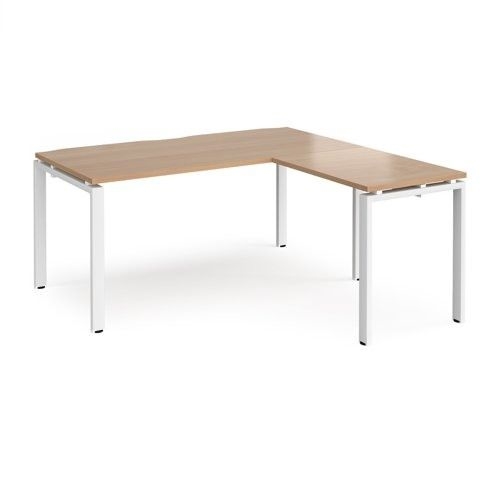Adapt desk 1600mm x 800mm with 800mm return desk - white frame, beech top