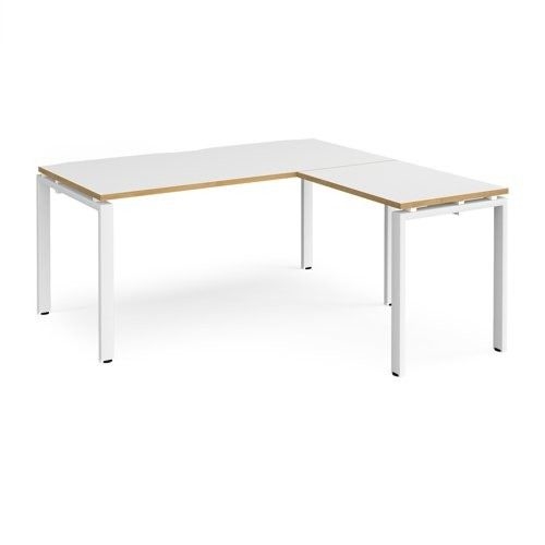 Adapt desk 1600mm x 800mm with 800mm return desk - white frame, white top with oak edge