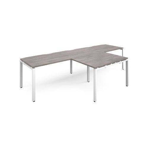 Adapt double straight desks 3200mm x 800mm with 800mm return desks - white frame, grey oak top