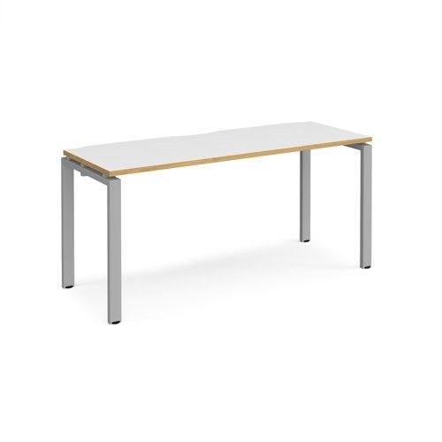 Adapt single desk 1600mm x 600mm - silver frame, white top with oak edging