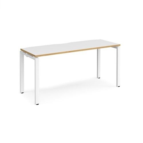 Adapt single desk 1600mm x 600mm - white frame, white top with oak edging
