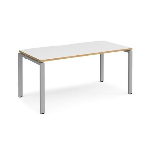 Adapt single desk 1600mm x 800mm - silver frame, white top with oak edging