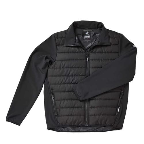 The ATS hybrid jacket has a lightweight polyester quilted body for warmth and lightweight soft-shell arms for ease of movement.