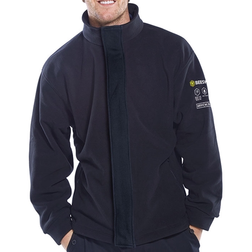 Flame Retardant, Anti-Static, ARC Fleece. 300gsm 60/40 Modacrylic/cotton with anti-static grid. Inherently flame retardant fabric. FR properties will not diminish with repeated laundering. For industrial workers exposed to heat. Not suitable for fire fighters. Front full length zip closure with storm flap Ribbed cuffs. Robust yet soft and comfortable to wear.EN ISO 13688:2013 - General requirements for protective clothingEN 1149-3:2004 - Anti Static - Test methods for measurements of charge decayEN 1149-5:2008 - Anti Static - Material performance and design requirementsEN ISO 11612:2015 (A1 A2 B1 C1) - Protection against heat and flameARC FLASHIEC 61482-2:2009 - Performance requirements and design requirementsEN 61482-1-2:2007 (Class 1 = 4kA) - Box Arc testingEN 61482-1-1:2009 (ATPV = 38.3 Cal/cm2) - Open Arc testing