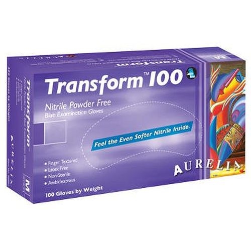Aurelia TRANSFORM/SONIC Finger-Textured Blue Powder Free LARGE Nitrile Gloves 100's