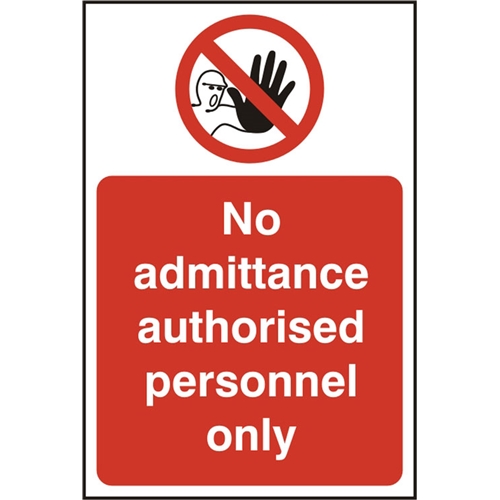 No admittance atuthorised personnel only safety sign Rigid PVC Sticks to most surfaces Can be wiped clean 200 x 300mm