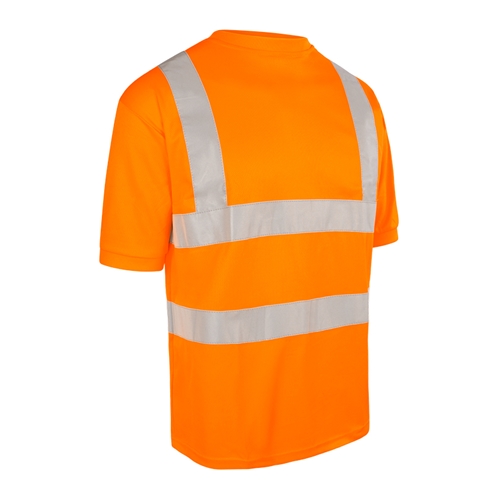 High visibility tee shirt 100% Bird Eye Polyester fabric Reflective tape Conforms to EN ISO 13688:2013+A1:2021 Conforms to EN ISO 20471:2013+A1:2016 Class 2 High Visibility RIS-3279-TOM Issue 2 - Railway use certified.