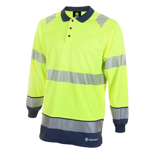Beeswift Deltic Hi-Vis Two Tone Long Sleeve Polo Shirt Saturn Yellow / Navy 4Xl