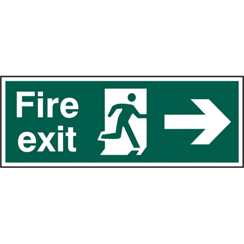 Fire exit (Man arrow right) safety sign Rigid PVC Sticks to most surfaces Can be wiped clean 400 x 150mm