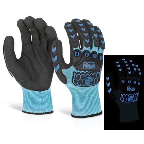 Beeswift Glovezilla Glow In The Dark Foam Nitrile Coated Gloves Blue Xxl