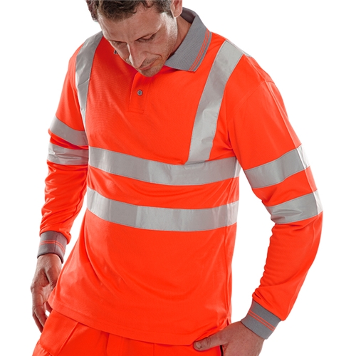 Beeswift Long Sleeve Hi-Vis Polo Shirt Red 3Xl