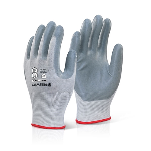 Beeswift Nitrile Foam Nylon Gloves Grey 09