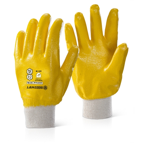 Beeswift Nitrile Knitted Wrist Fully Coated Light Weight Gloves Yellow 10