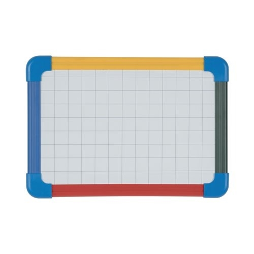Learning can be fun with the Bi-Office Schoolmate Laptop Mini Whiteboard. This A4 board is a great alternative to verbally answering a question in class. Besides ensuring active participation from all children, it encourages the ones who may be too shy to put their hand up to answer a question, building their confidence. It can also be used in many ways from writing and drawing, to playing learning games to consolidate understanding. Plain on one side, gridded on the other, to meet kids specific needs. Grids help perfect letter and number formation, and complete math exercises. Plus, they can play around and post items with magnets. Thanks to the drywipe surfaces, its ok to try and make mistakes, as they can wipe the board clean and just start again. Its plastic 4-colour edges and round corners make this lightweight yet resistant portable board a fun, safe and engaging method for kids to experiment with pen control, drawing, and colouring.