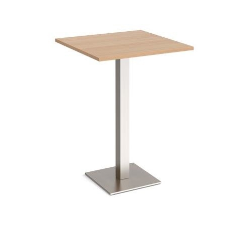 Brescia square poseur table with flat square brushed steel base 800mm - beech