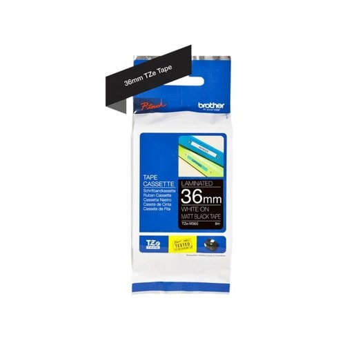 Compatible with a wide range of Brother’s P-touch printers, this genuine matt laminated TZe-M365 labelling tape cassette is especially versatile thanks to its easy-to-read white on black colour - so it comes in useful around the home, office and in other workplaces.