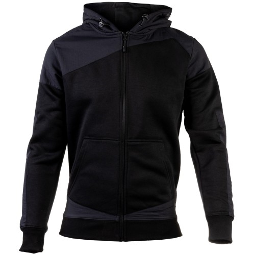 A versatile workwear zip hoodie. There is a thick and warm poly/cotton fleece blend and continue with contrasting, abrasion-resistant nylon overlays to add durability. This is a fitted garment, recommend to order a size up.