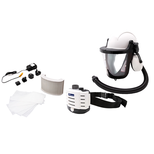 Complete respiratory protection system with head and face protection all in one box 180 litres of filtered air per minute Lightweight Li-ion batteries, with a typical 8 hour usage before recharge Complete with a P3 particulate filter and 5 pre-filters Approved to EN 12941 TH2P, Helmet approved to EN 397,Visor approved to EN 166 1 B 3 9