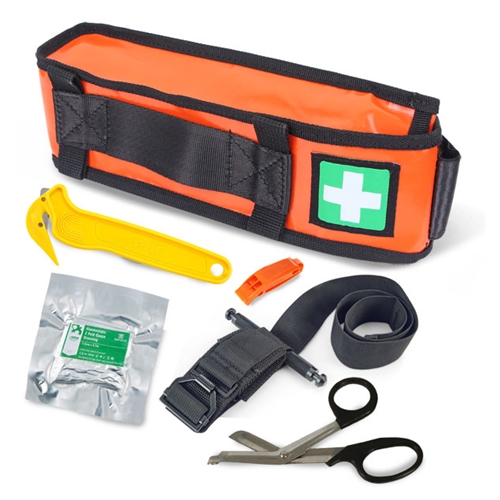 The Arborist Quick Release Kit is designed for single person operation when facing a major trauma injury when working on their own or in a difficult working position.The kit can fit on belt, a bag or other form of webbing and features a quick release cord, which when pulled brings the contents of the bag to the top of the bag enabling easy access to the contents of the kit.The kit comes complete with:1 x pair of 17.5cm Tuffcut clothing shears1 x Rescue Whistle1 x PHC cutter for safely releasing webbing or clothing1 x SOF Military Tourniquet (CAT Tourniquet available as an option)Finally, the two kits are supplied with :CM0070 - a 15cm Emergency Bandage which can apply significant pressure to the wound to prevent excessive bleedingCM0071 - Our Cuteeze 3.7m x 7.5cm Haemostatic Dressing, for those trained in the use of Haemostatic dressings, ideal for all major trauma injuries