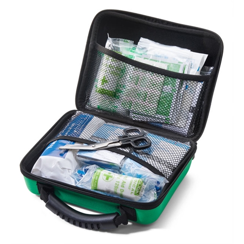 All our travel kits are supplied in the option of our Feva range of cases, which are lightweight, durable, but more aesthetically pleasing than standard first aid bags and boxes. Ideal for the glove compartment or boot space.Contents: F/A guidance leaflet x 1 Medium trauma dressing x 2 Large trauma dressing x 1 Triangular dressing x 2 Adhesive plaster x 20 Adherent dressing large - 2 Sterile wet wipe - 20 Sterile dressing ambulance - 2 Nitrile gloves - pair - 5 Face shield - 2 Foil blanket - 3 Burn relief dressing 10 x 10cm - 4 Universal shears 6" - 1