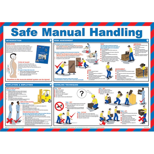 User friendly text and clear instructions show employees how to prevent accidents and injury whilst maintaining a healthy working environment Durable laminated construction with full colour illustrations Compiled by qualified health and safety practitioners Size 59 x 42cm (A2 Paper size)