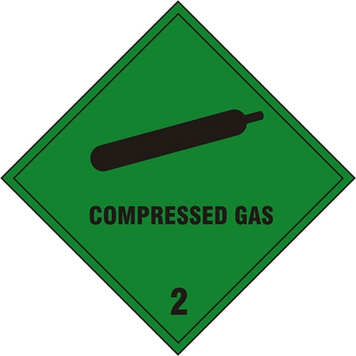 Compressed Gas safety sign Self adhesive vinyl backing Sticks to most surfaces Can be wiped clean 200 x 200mm