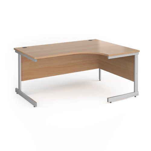 Contract 25 right hand ergonomic desk with silver cantilever leg 1600mm - beech top