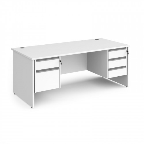 Contract 25 straight desk with 2 and 3 drawer silver pedestals and panel leg 1800mm x 800mm - white
