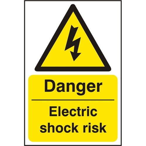 Danger Electric shock risk safety sign Self adhesive vinyl backing Sticks to most surfaces Can be wiped clean 200 x 300mm