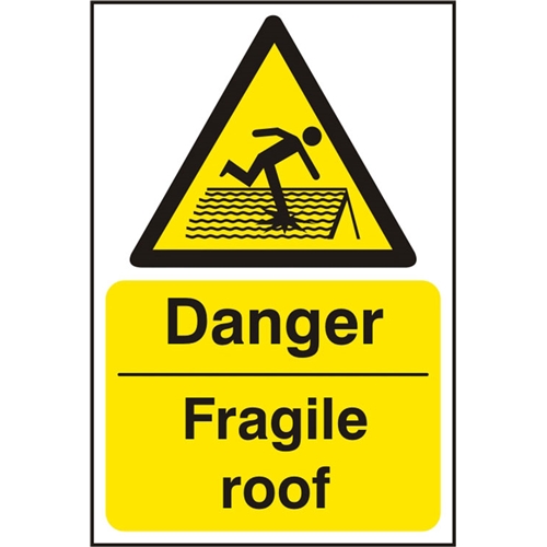 Danger Fragile Roof Sign White/Yellow 200X300Mm