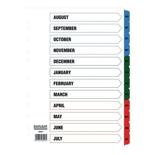 Eastlight A4 Academic Year Dividers Aug-Jul Europunched