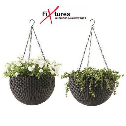 Fixtures Brown Rattan Effect Hanging Basket LARGE 25cm x 16cm