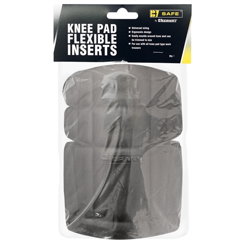 Universal sizing. Ergonmic design. Easily moulds around knee and can be trimmed to size. For use with all knee pad type work trousers.
