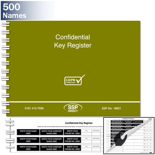 GDPR Compliant Key Register Log (500 Concealed Names)
