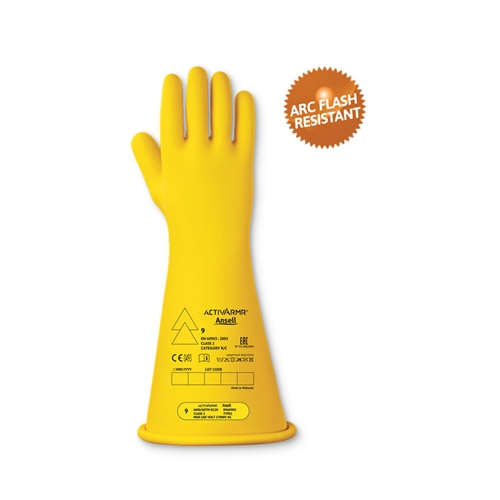 Natural rubber latex utilises a proprietary environmentally friendly dipping process for ultimate flexibility and dexterity Ergonomic hand-at-rest shape and non-splayed fingers reduce hand fatigue Generous flared cuff allows room for clothing Smooth-finish for easy donning and doffing 360MM / 14” Length Used in combination with AN96-003 leather protector to provide mechanical protection (designed for Ansell’s class 1-4 electrical gauntlets only) Certified for resistance to acid (Category A), Ozone (Category Z) and very low temperatures (Category C) Applications with risk of touch voltage AC maximum 17000 V (DC maximum 25500) Electrical Glove Class 2 offers arc flash protection (APC 2 when worn in combination with 96-003) ATPV : 14 cal/cm , EBT : 33 cal/cm with 96-003 leather glove protector EN 60903:2003 Live working. Gloves of insulating materialPlease note Class 1-4 Electrical insulating gloves are made to order products with MOQs and longer than standard leadtime. Consequently, these items are non-cancellable once the order is confirmed.