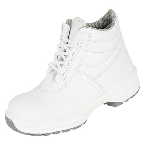 Himalayan 9952 microfibre unisex boots feature a shock-resistant and crushproof steel toe cap. The safety boots are manufactured from machine washable white microfibre and also feature a SRC rated slip resistant sole for the highest levels of slip resistance available. The soles are also resistant to oils and are anti-static. These hard wearing work boots are ideal for use in catering environments, food manufacturing, the food packaging industry, within kitchens, hospitals, care facilities, medical environments, clean rooms, etc. These are unisex catering boots and are suitable for both men and ladies.