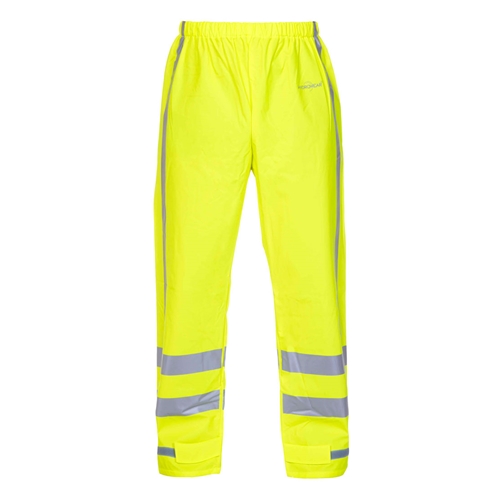 Elasticated waist Adjustable leg opening with hook and loop Lightweight and durable Flame retardant and anti-static 170 gsm 53% PU / 47% PES (FR Trevira CS Polyester) Conforms to the following standards: EN ISO 14116:2015 Index 1 Protection against limited flame spread EN 1149-5:2008 Anti Static- Material performance and design requirement EN ISO 20471:2013+A1:2016 Class 1 High Visibility EN 343:2003+A1:2007 Class 3:1 Protection against rain EN ISO 13688:2013 General Requirements for protective clothing